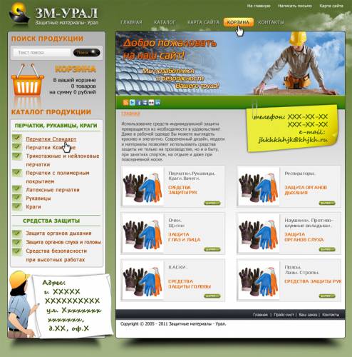 Дизайн и верстка сайта по продаже защитных материалов, http://zm-ural.ru/
